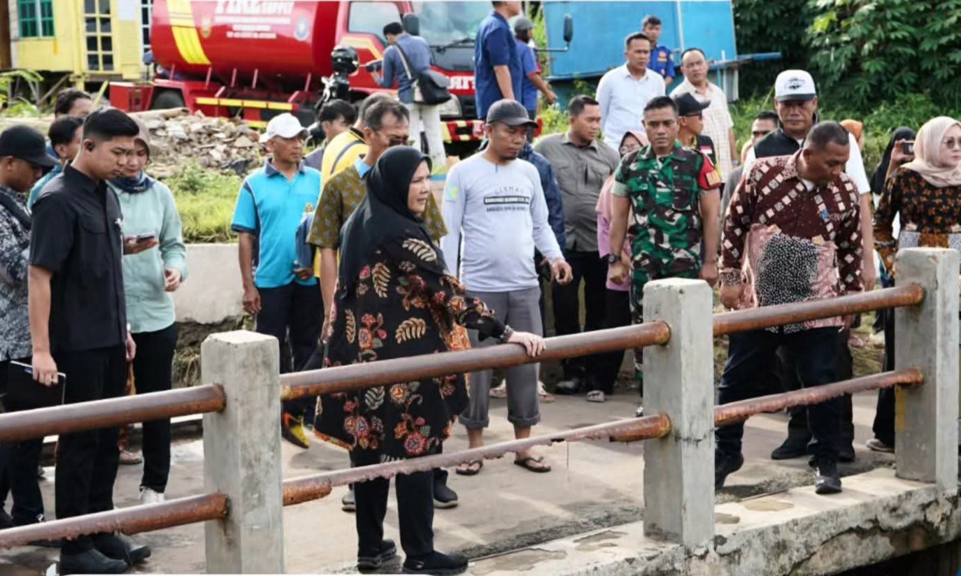 Walikota Bandarlampung, Hj. Eva Dwiana, meninjau sejumlah lokasi terdampak banjir dan infrastruktur drainase di Bandarlampung, Sabtu (10/1/2026). (Istimewa)