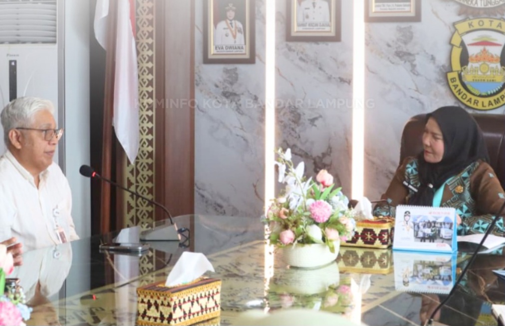 BANDARLAMPUNG- Walikota Bandarlampung, Hj. Eva Dwiana menerima kunjungan Kepala KAI Divre IV Tanjungkarang, Hendy Helmy, beserta jajaran di ruang rapat walikota setempat, Jumat (20/2/2026).