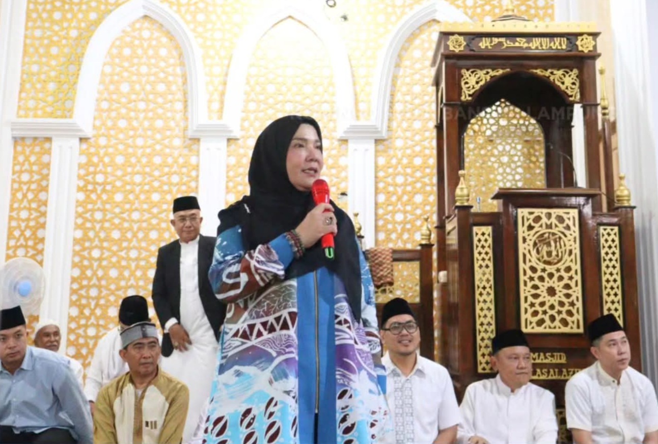 Walikota Bandarlampung, Eva Dwiana, menghadiri Safari Ramadan 1447 Hijriah di Masjid Ikhlas Al Azhar, Kemiling, Ahad (22/2/2026). (Istimewa)