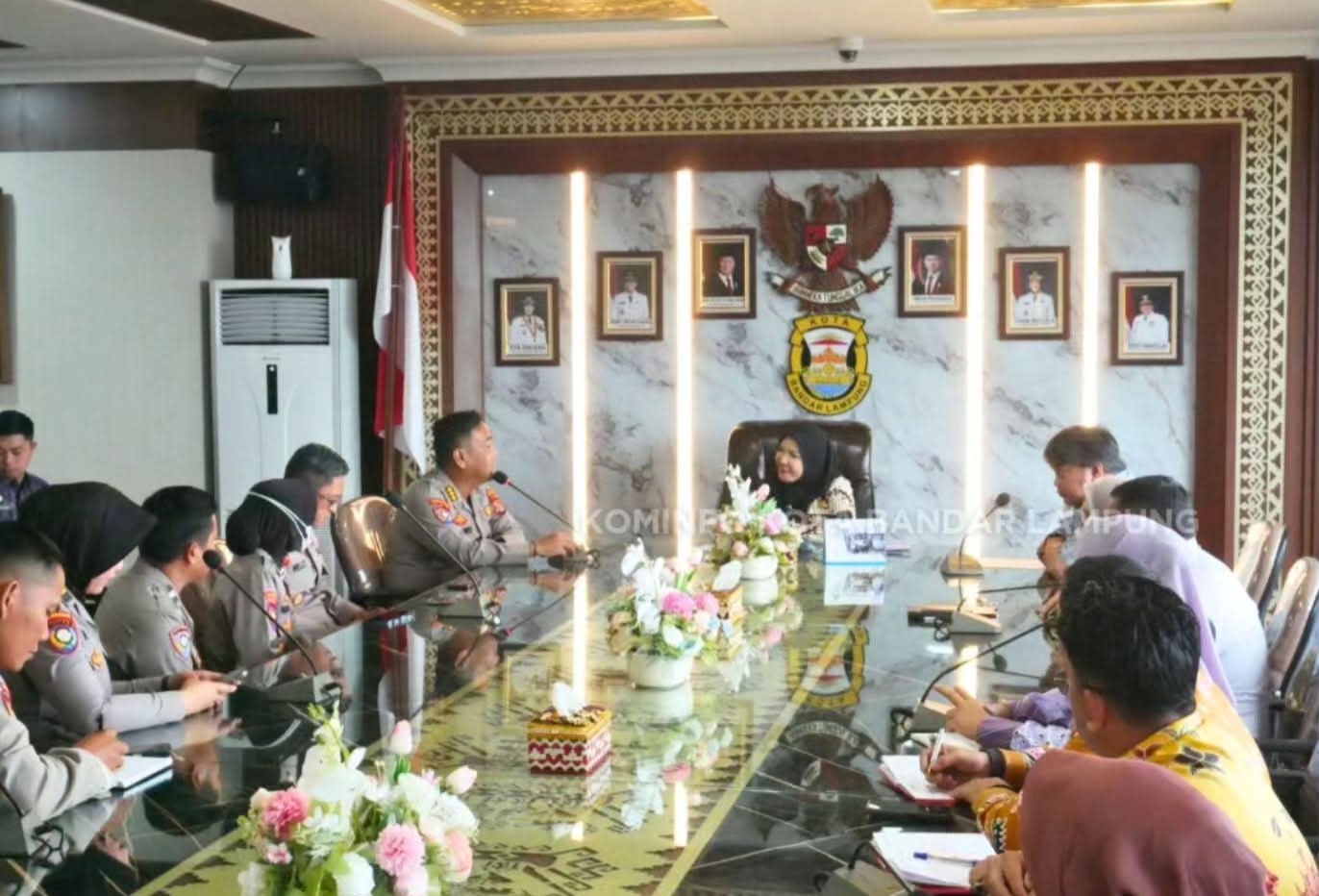 BANDARLAMPUNG- Walikota Bandarlampung, Hj. Eva Dwiana, menerima audiensi Dirbinmas Polda Lampung di ruang rapat walikota setempat, Jumat (27/02/2026).