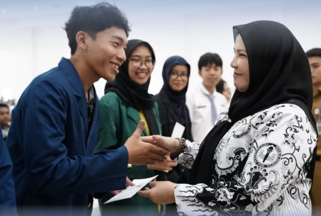 Bandarlampung — Wali Kota Eva Dwiana menyerahkan Program Bantuan Pendidikan kepada siswa SMA/SMK serta mahasiswa perguruan tinggi di Kota Bandar Lampung Tahun 2025, Selasa (30/12/2025). Kegiatan dilaksanakan di Gedung Siger Mandala Alam.