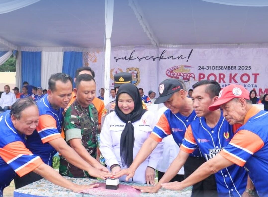 Bandarlampung — Wali Kota Eva Dwiana secara resmi membuka Pekan Olahraga Kota Bandar Lampung Tahun 2025 di Lapangan Kalpataru, Rabu (24/12/2025).